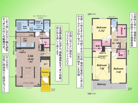 カースペース2台可(車種による) 24時間換気 浴室乾燥機 全居室クローゼット 浄水器 ビルトイン食洗機 シャッター アクセントクロス 網戸標準 手摺付階段 ハンドシャワー付洗面台 全居室2面採光