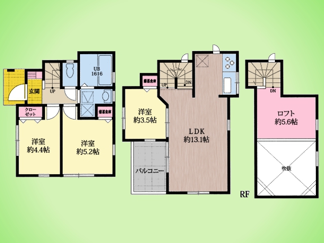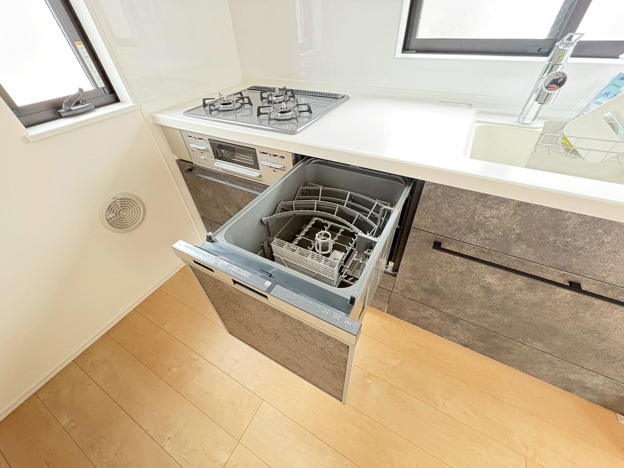 駐車スペース2台可(車種による) 浴室乾燥機付きバスルーム 食洗機・浄水器一体型システムキッチン ロフト収納付き ワイドバルコニー 都市ガス