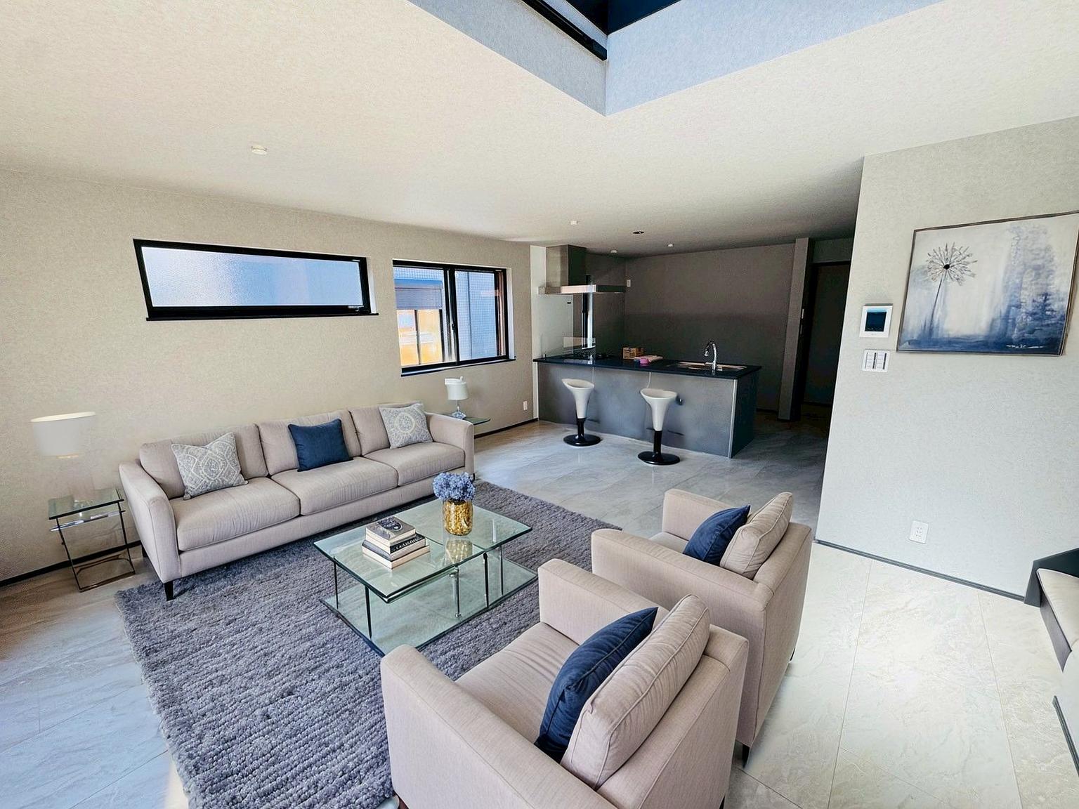 明るいリビングルームは自然と家族が集まるコミュニケーションの場所に