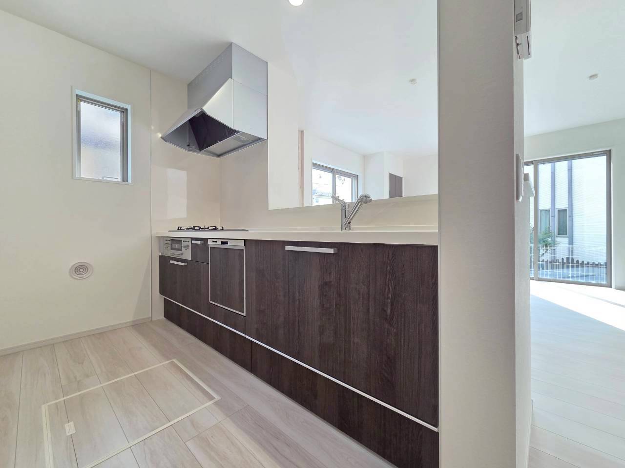 駐車スペース2台可(車種による) 開放感のある角地 食洗機・浄水器一体型システムキッチン 浴室乾燥機付きバスルーム ハンドシャワー付洗面台 南東向きワイドバルコニー 都市ガス