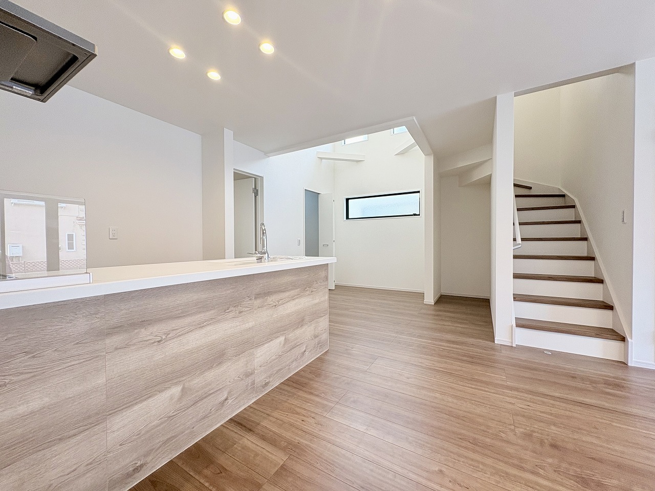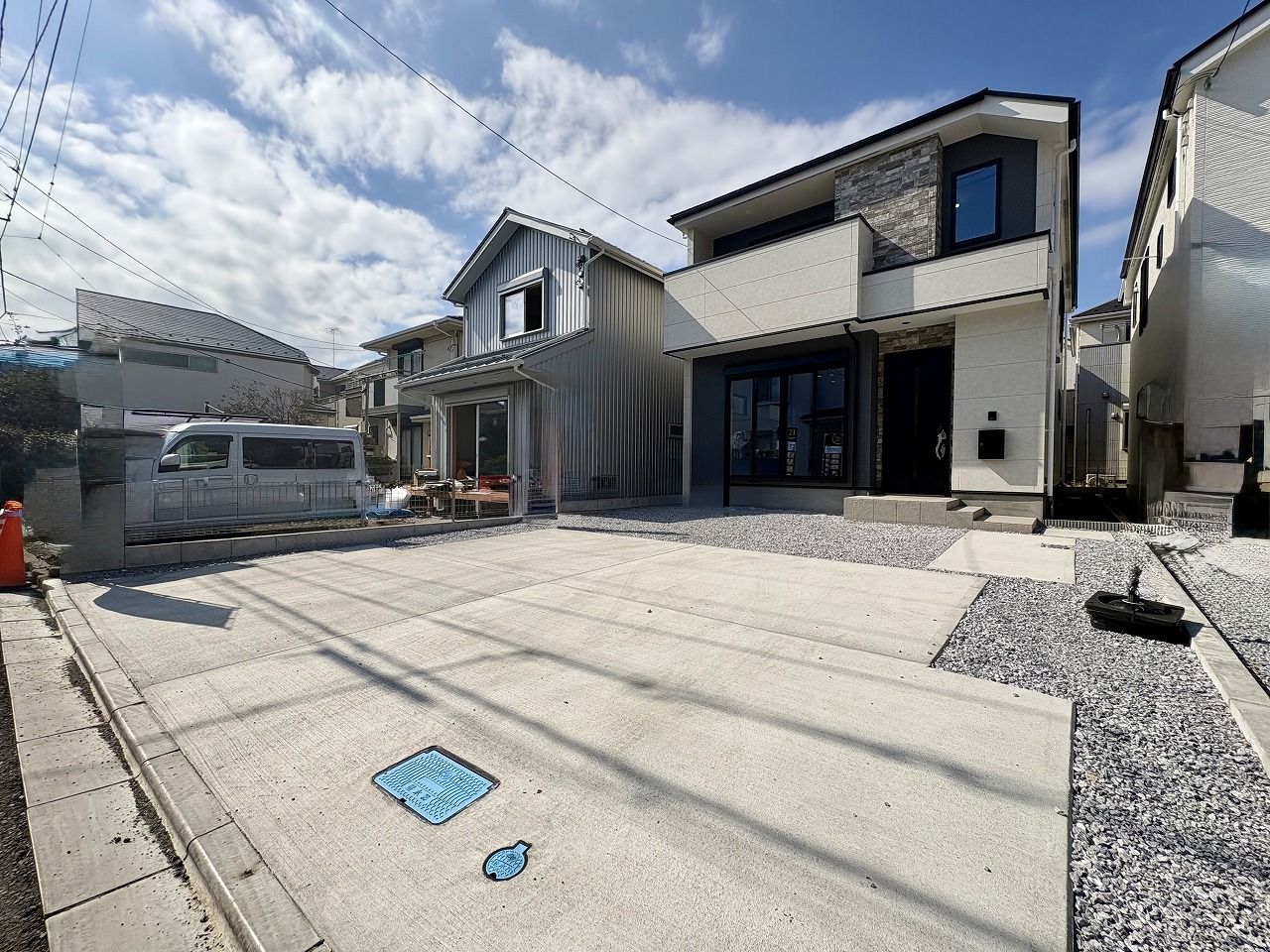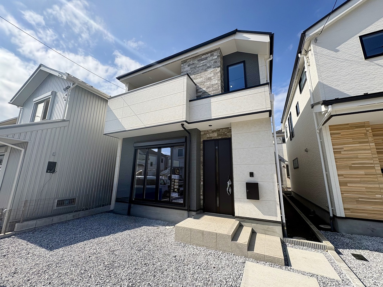 駐車スペース2台可(車種による) 全室ペアガラス 床暖房完備 浴室乾燥機付きバスルーム 浄水器一体型システムキッチン リビングイン階段 都市ガス