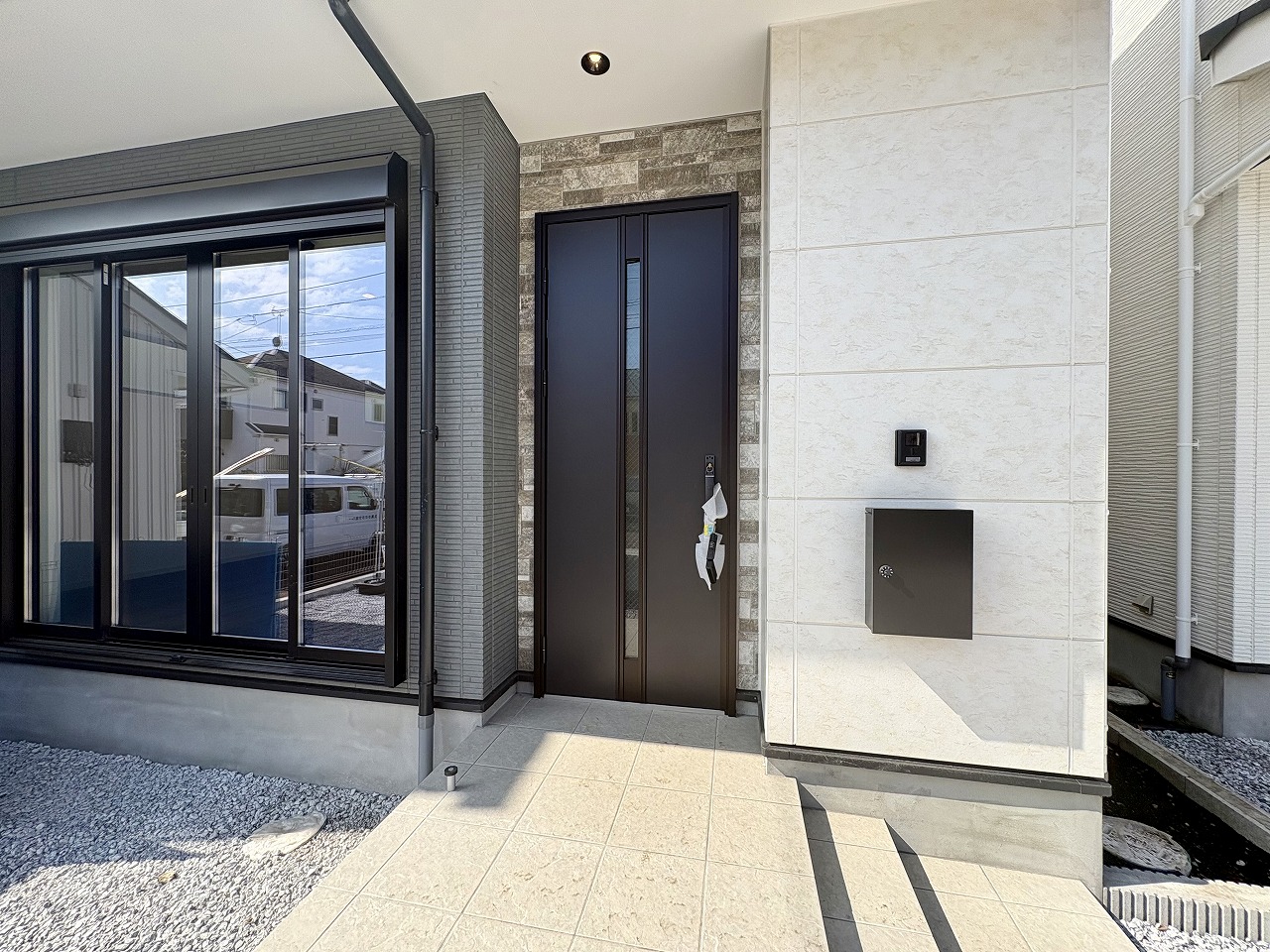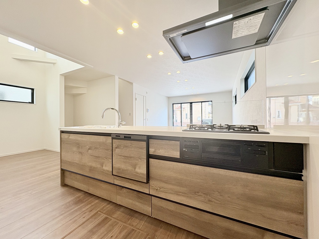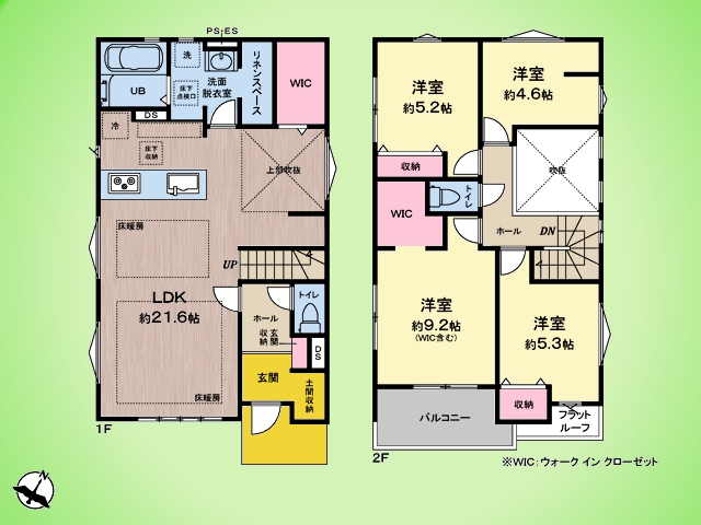 駐車スペース2台可(車種による) 全室ペアガラス 床暖房完備 浴室乾燥機付きバスルーム 浄水器一体型システムキッチン リビングイン階段 都市ガス
