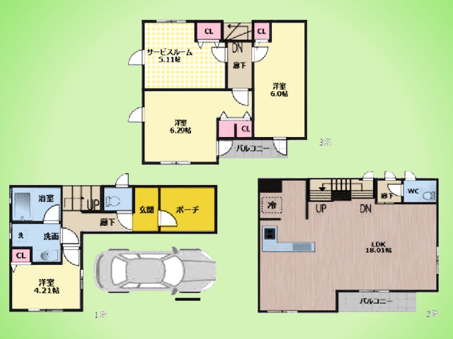 駐車スペースあり(車種による) 浴室乾燥機付きバスルーム 食洗機・浄水器一体型システムキッチン 居室としても使える広さのサービスルームあり