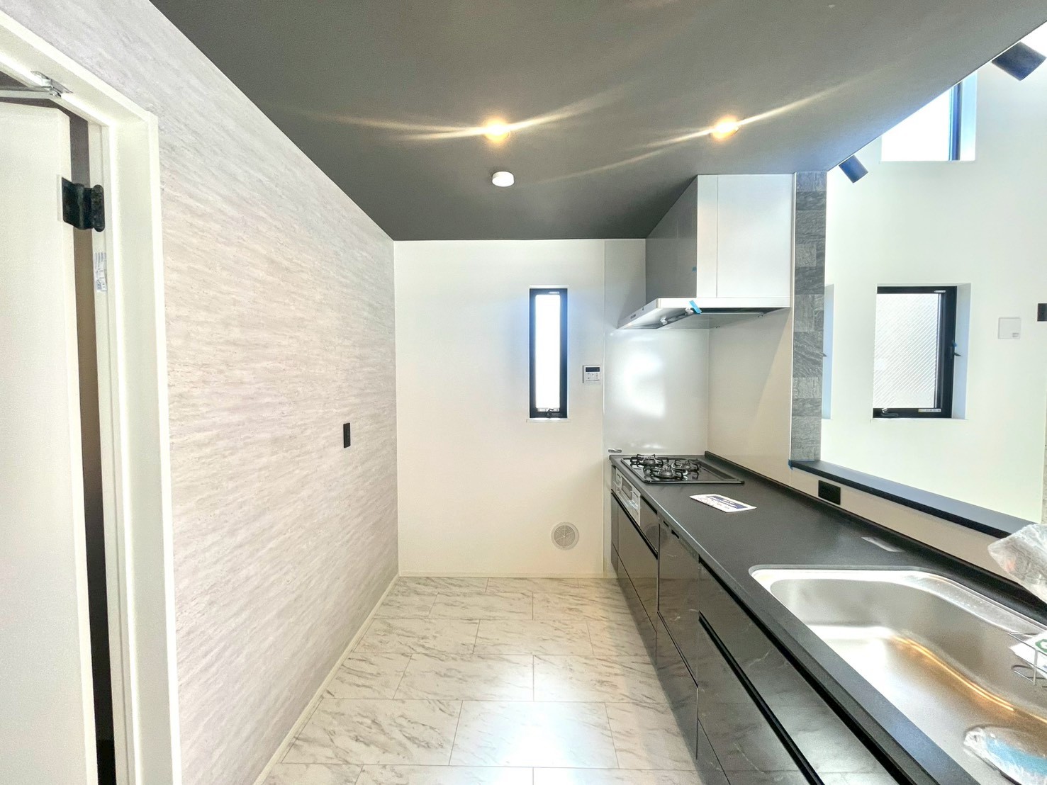 駐車スペース2台可(車種による) 完成済みにつき内覧・即時引渡し可能 居室としても使える広さのサービスルームあり 主寝室にはウォークインクローゼット付き 都市ガス