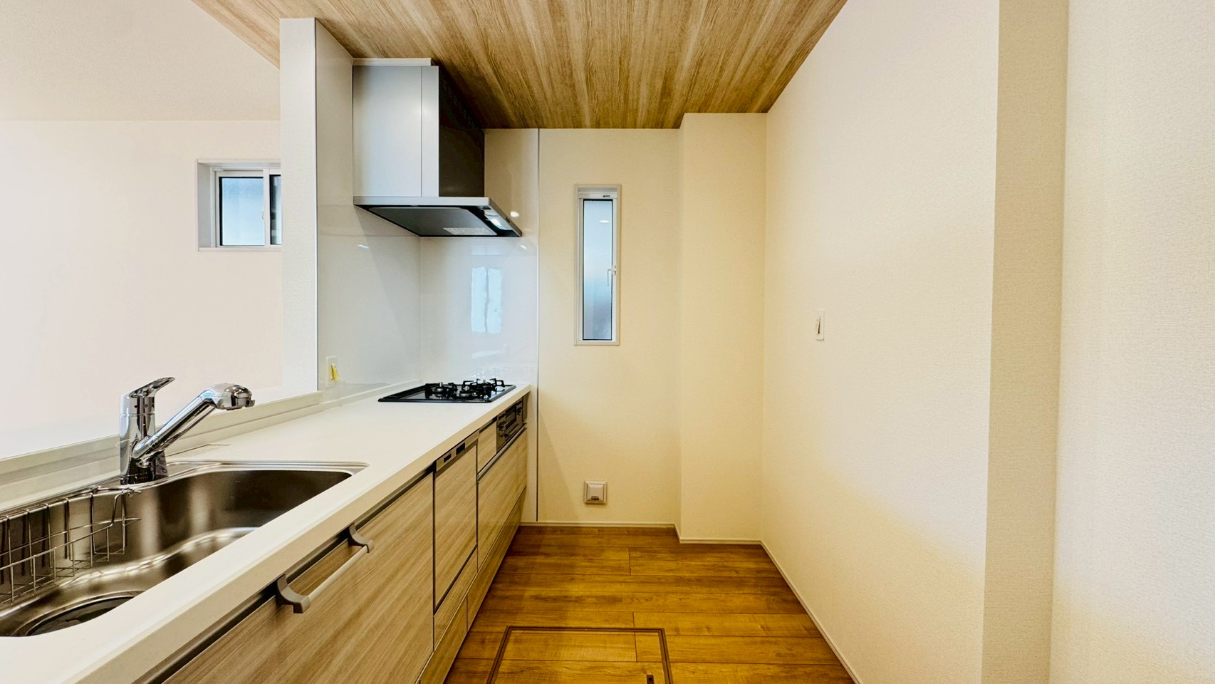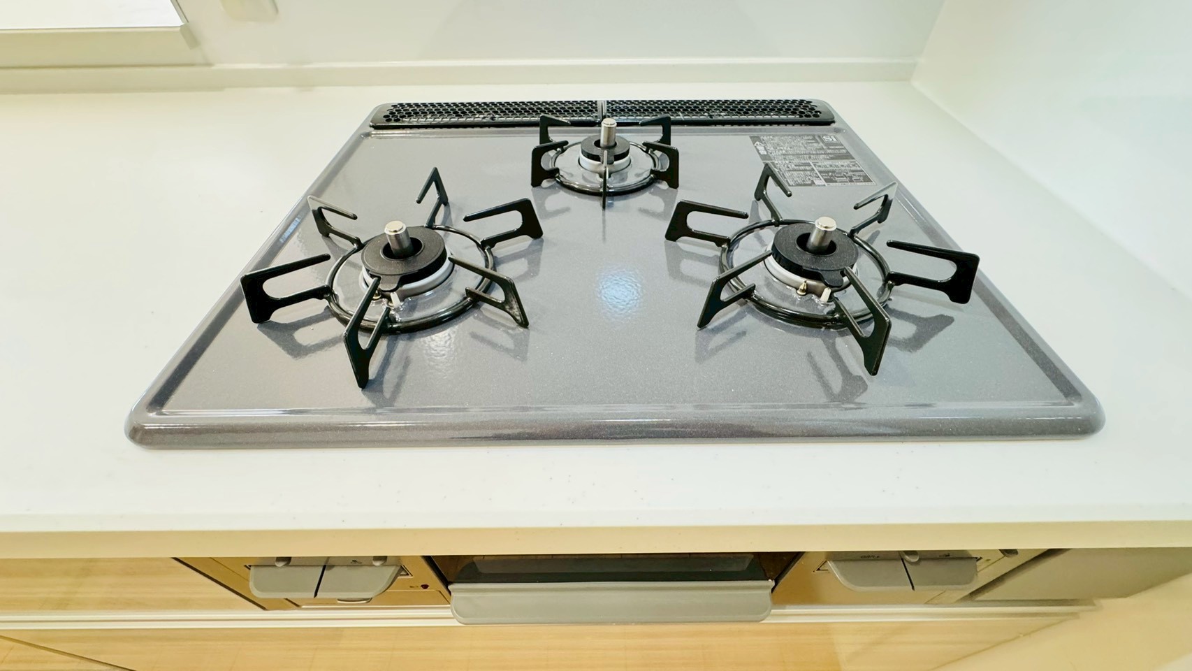 3口ガスコンロでお料理のスピードもUP。効率よくお料理ができますね