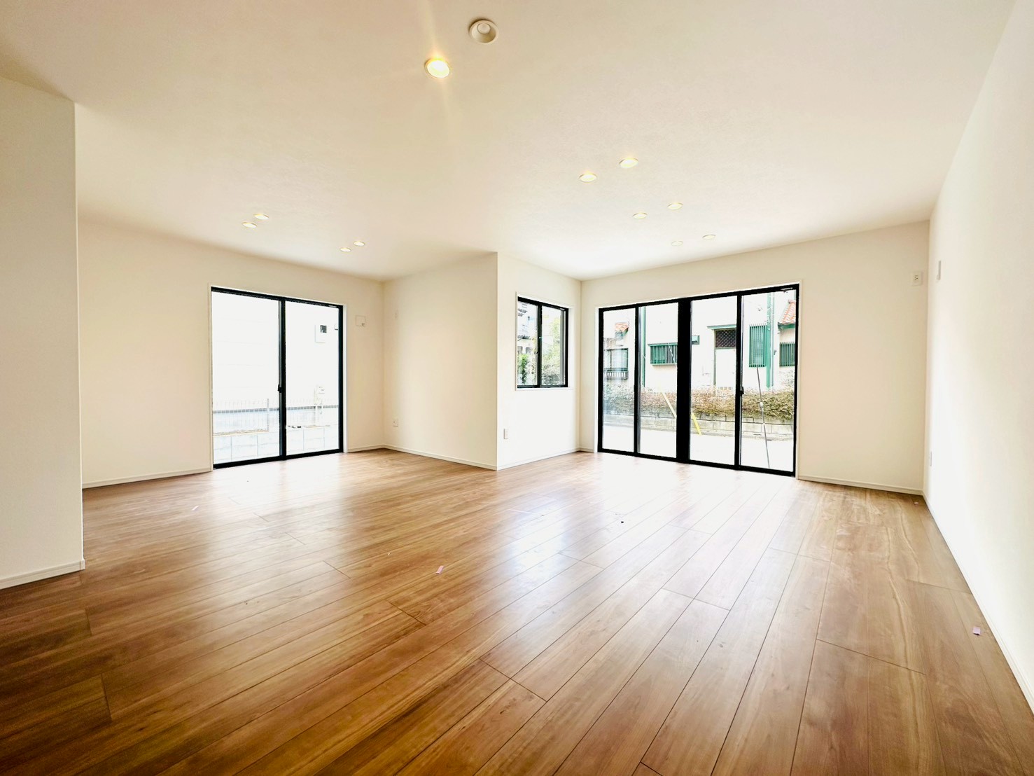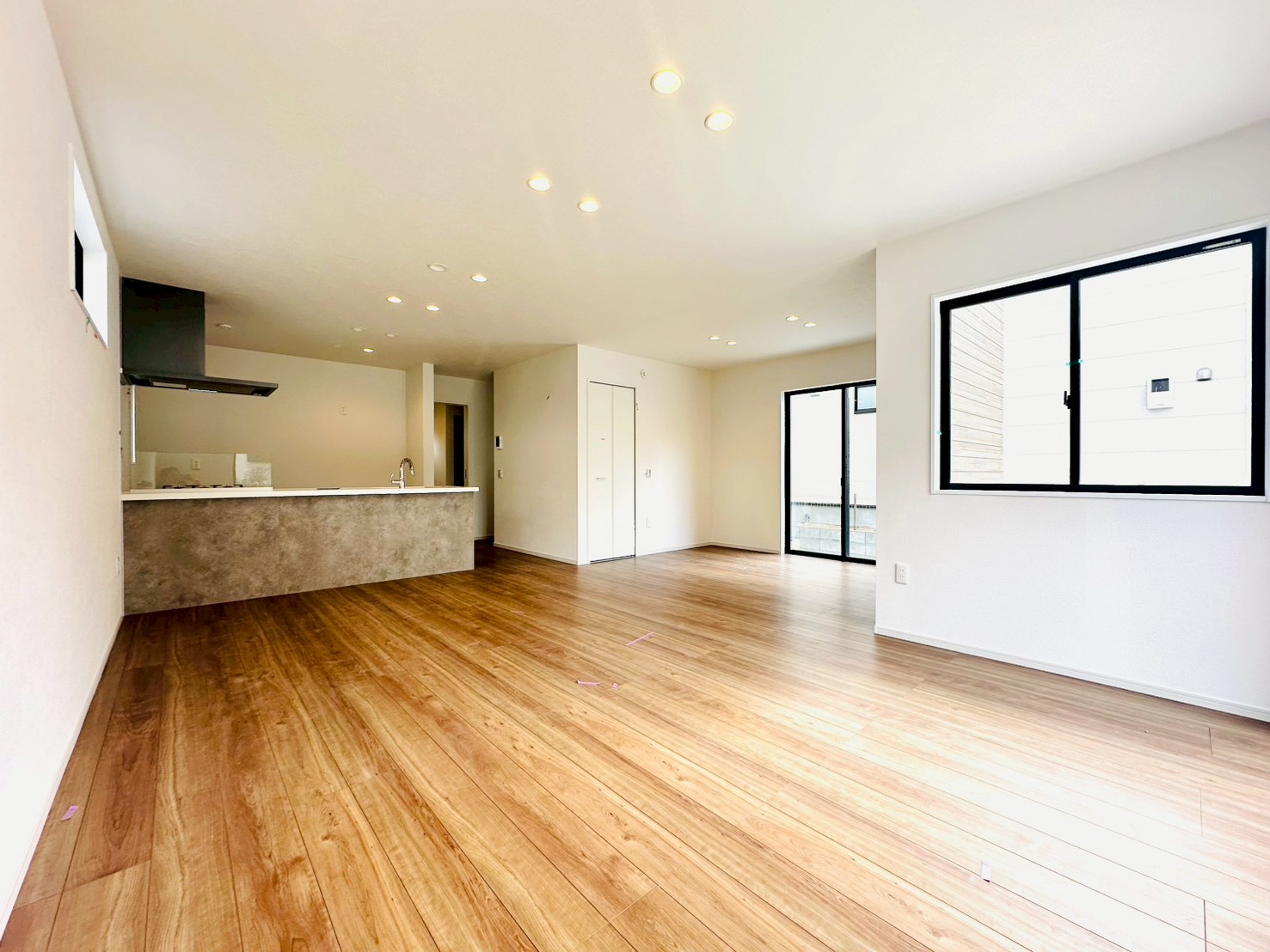 駐車スペース2台可(車種による) 全窓ペアガラス 床暖房完備 食洗機・浄水器一体型システムキッチン リビングイン階段 都市ガス