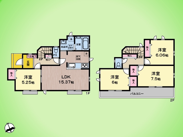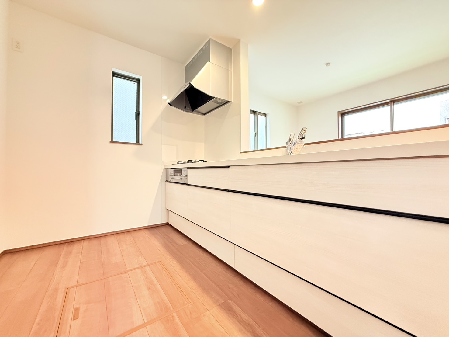 駐車スペース2台可(車種による) 1坪サイズバスルーム シャンプードレッサー 浄水器一体型システムキッチン ペアガラスサッシ 都市ガス
