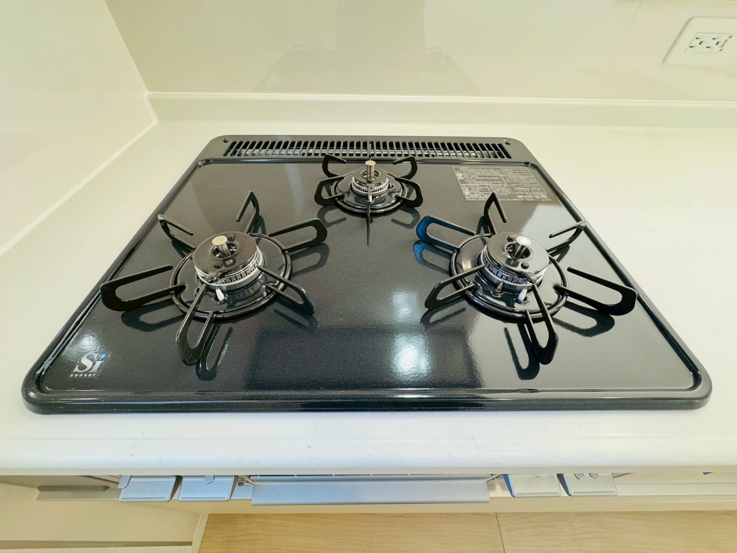 3口ガスコンロでお料理のスピードもUP。効率よくお料理ができますね