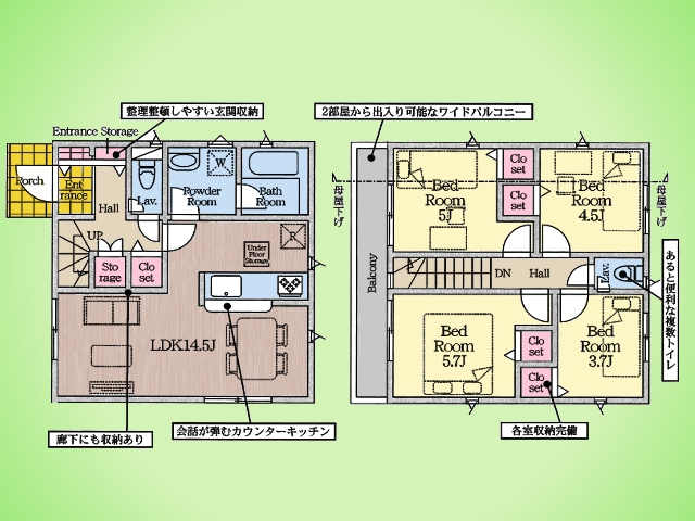 カースペース2台可(車種による) 浴室暖房乾燥機 シャワートイレ シャワードレッサー 人感センサー付玄関灯 全居室ペアガラス 制振装置 各居室収納スペース付き 廊下収納 スーパー徒歩約10分圏内