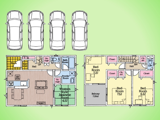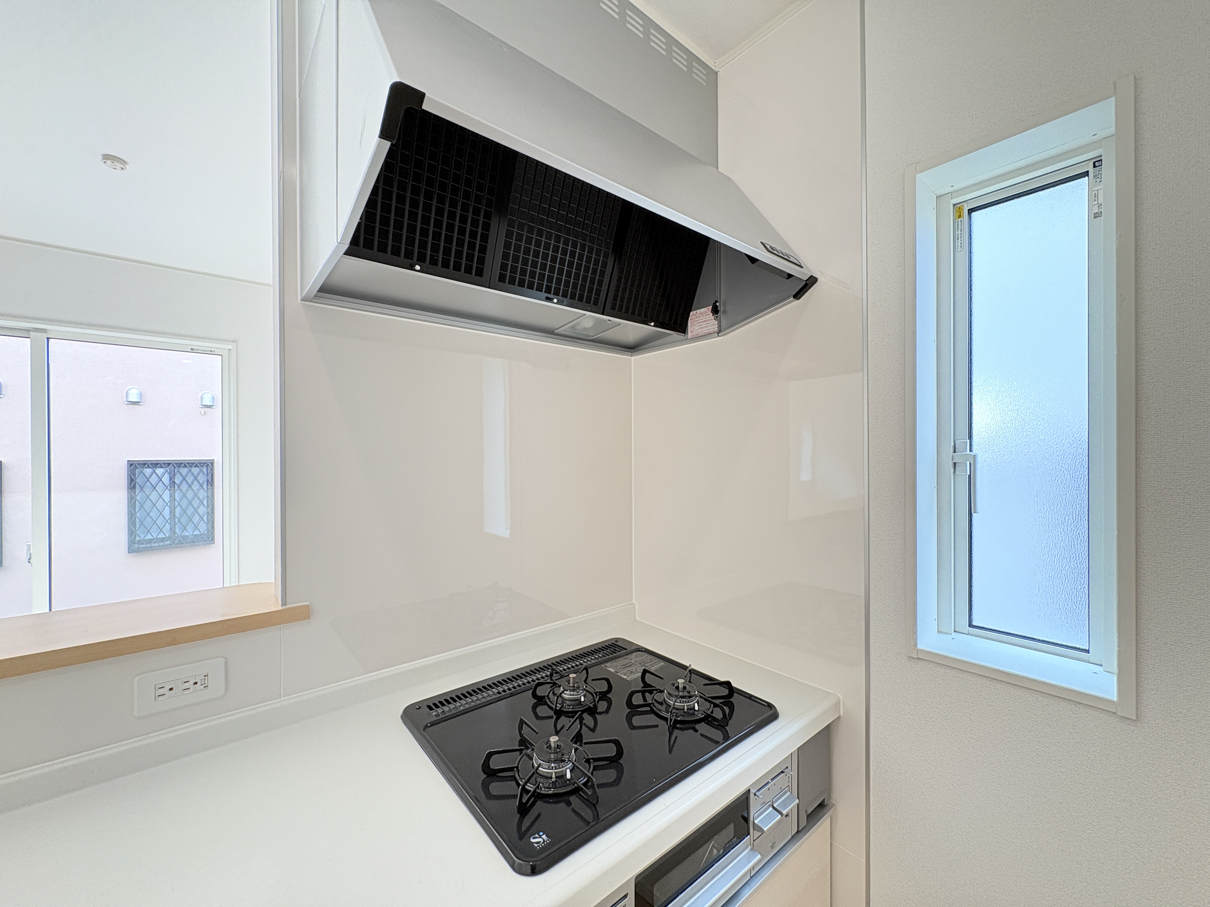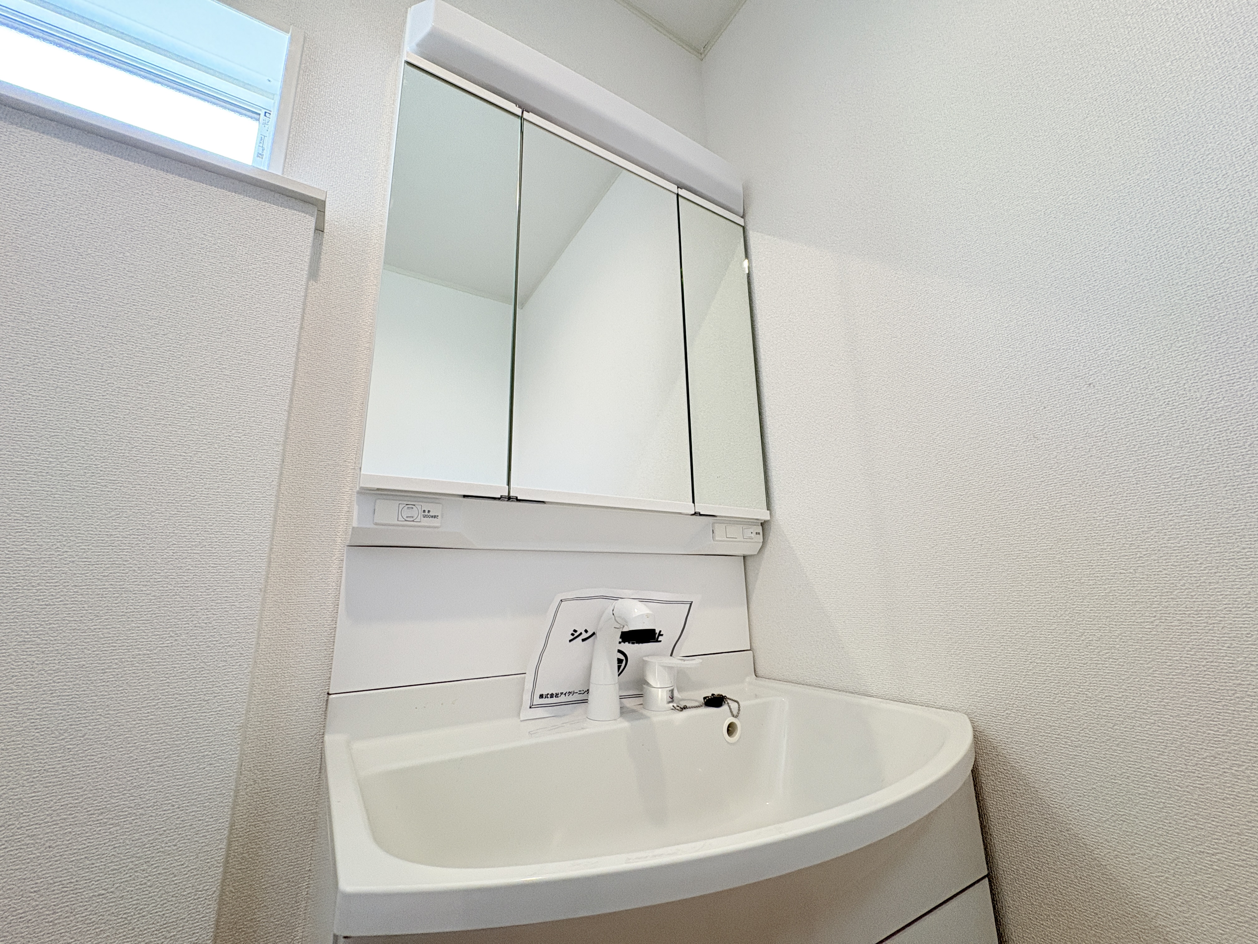 駐車スペース4台可(車種による) 完成済みにつき内覧・即時引渡し可能 全居室ペアガラス 人感センサー付き玄関灯 ピッキング対策付玄関ドア 浴室乾燥機付きバスルーム シャワードレッサー