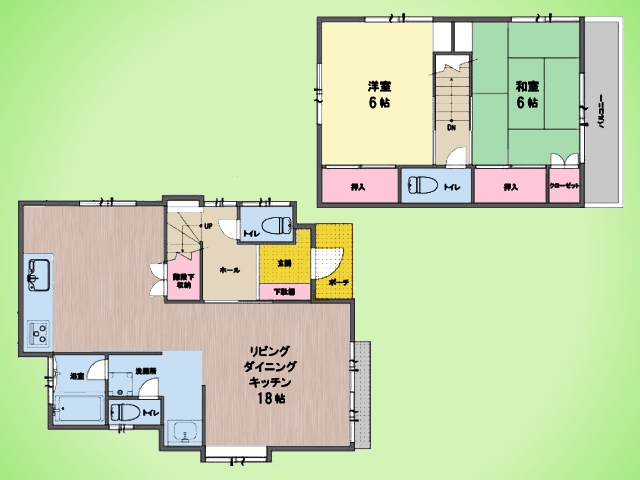 駐車スペースあり(車種による) 空室につき内覧・即時引渡し可能 18帖の広々LDK トイレ2か所(1階・2階) 南向きバルコニー
