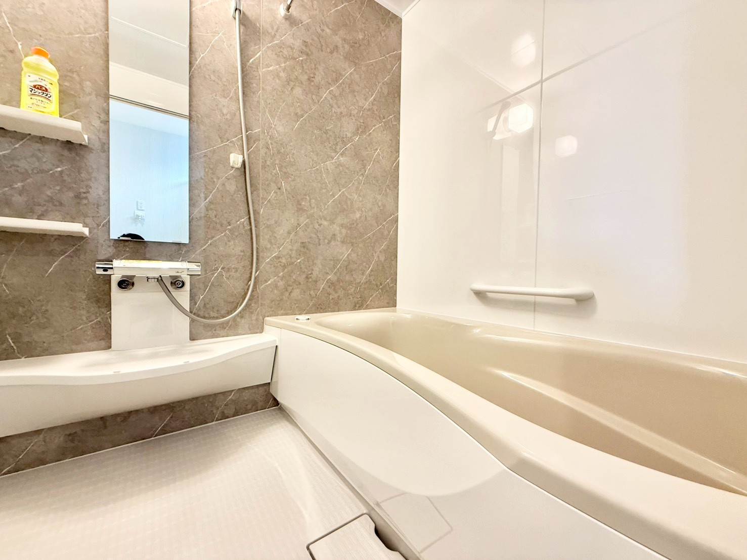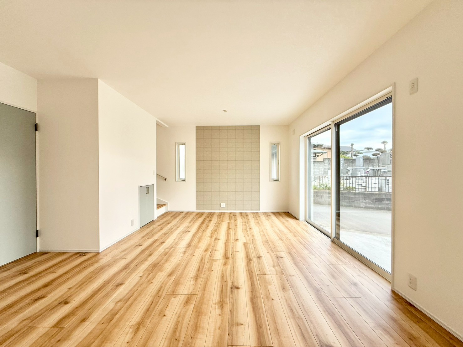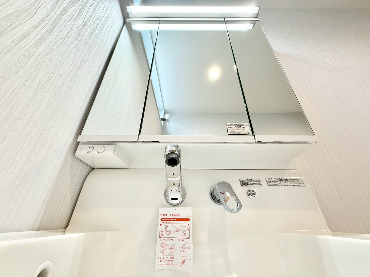 駐車スペース3台可(車種による) 完成済みにつき内覧・即時引渡し可能 浴室乾燥機付きバスルーム 食洗機・浄水器一体型システムキッチン シャワー付き洗面化粧台 都市ガス