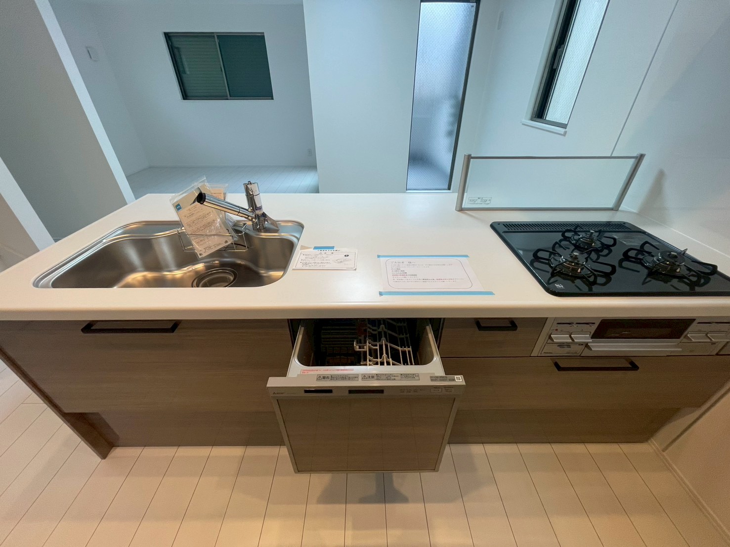 駐車スペースあり(車種による) 完成済みにつき内覧・即時引渡し可能 食洗機付きシステムキッチン 玄関にはシューズインクロークあり 都市ガス