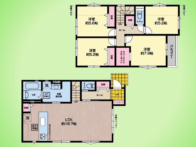 カースペース2台可(車種による) 前面道路6m 床下収納 浄水器 シャワートイレ 浴室暖房乾燥機 リビングイン階段 食洗機 三面鏡付洗面化粧台 エコジョーズ ウォークインクローゼット 全窓ペアガラス