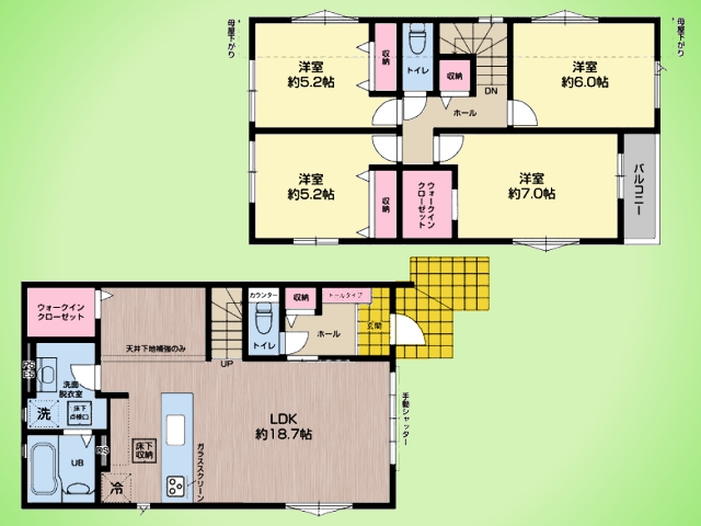 カースペース2台可(車種による) 前面道路6m 床下収納 浄水器 シャワートイレ 浴室暖房乾燥機 リビングイン階段 食洗機 三面鏡付洗面化粧台 エコジョーズ ウォークインクローゼット 全窓ペアガラス