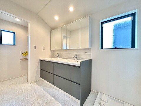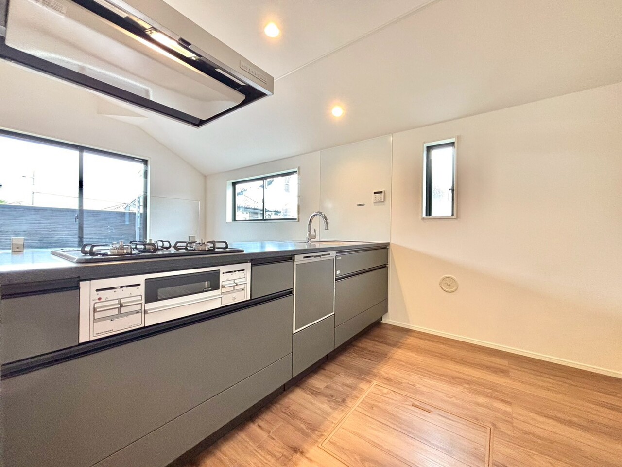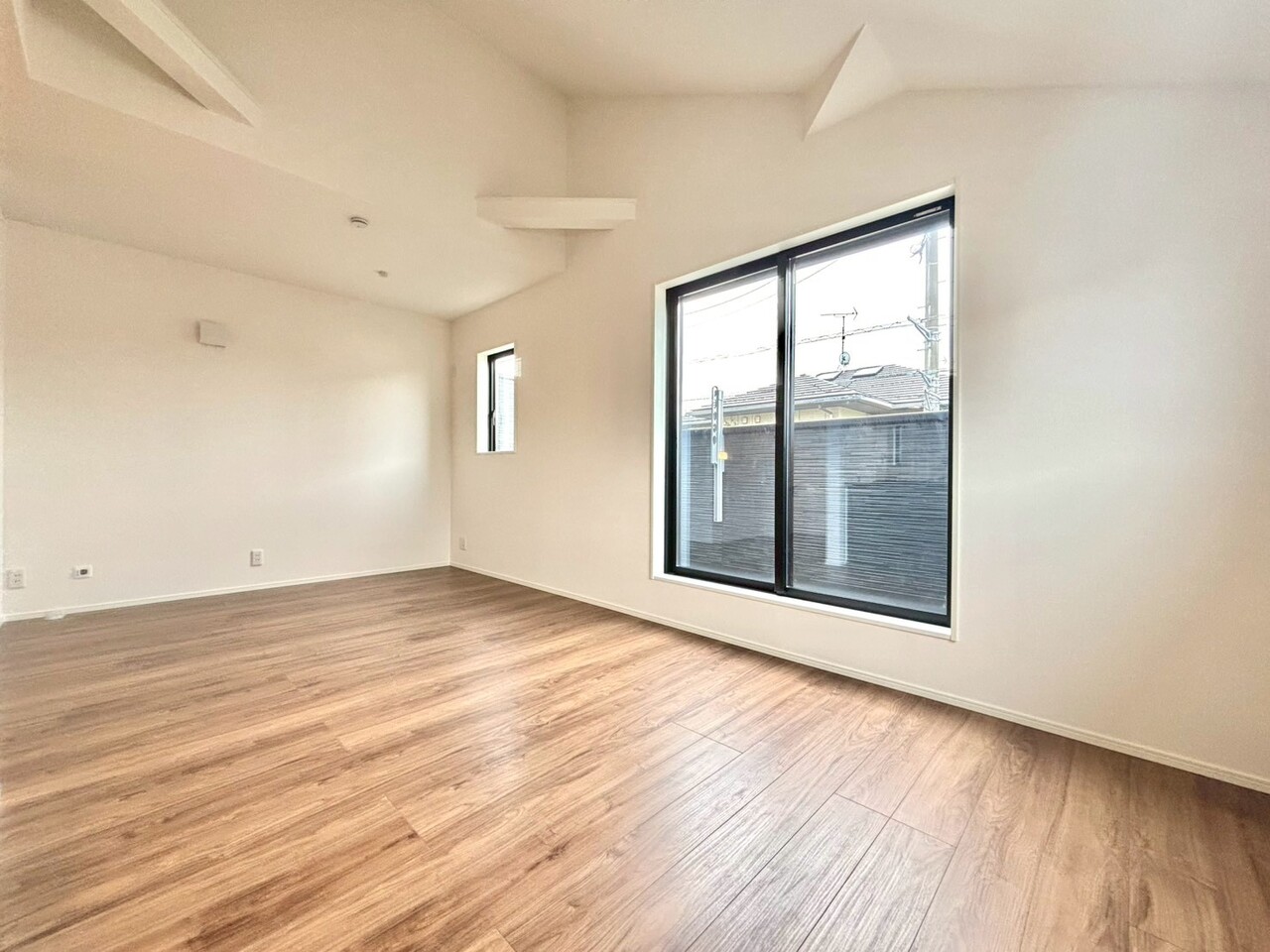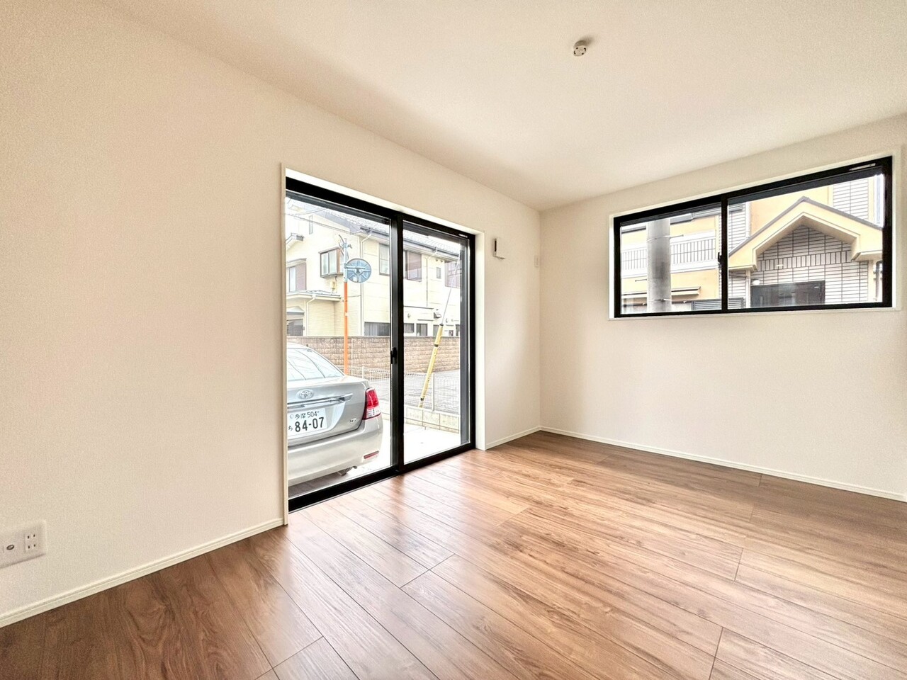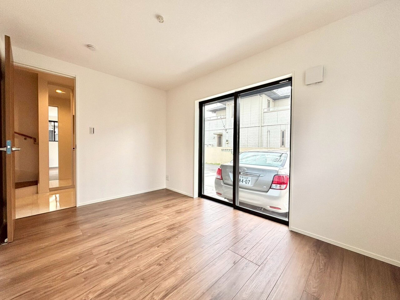 駐車スペース2台可(車種による) 完成済みにつき内覧・即時引渡し可能 日当たりの良い角地 居室としても使える広さのサービスルームあり