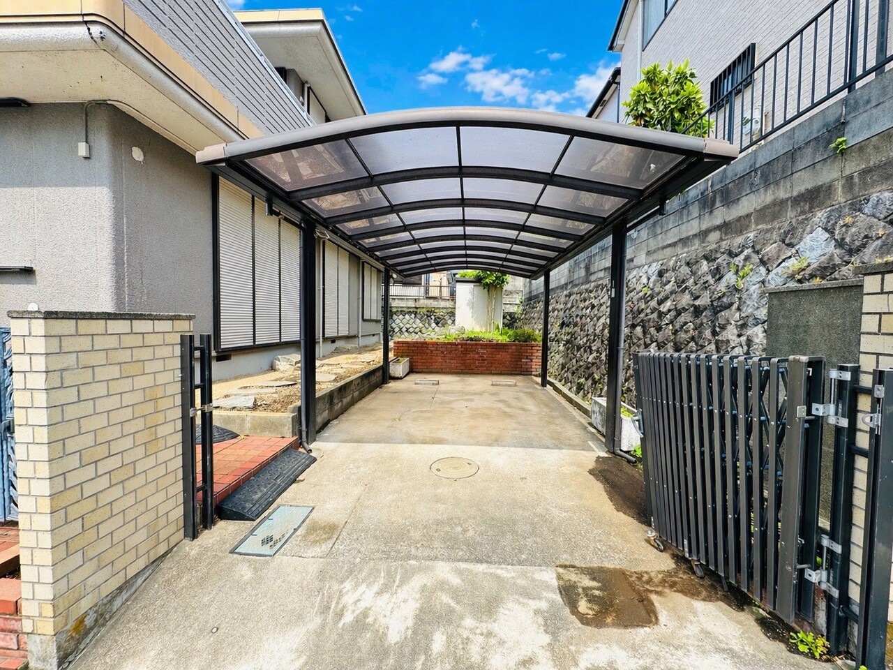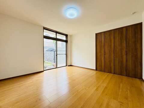 駐車スペースあり(車種による) 空室につき内覧・即時引渡し可能 広いお庭付き 大型収納としても使える広さの納戸あり 都市ガス