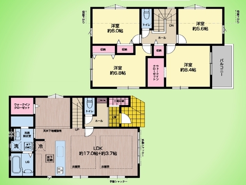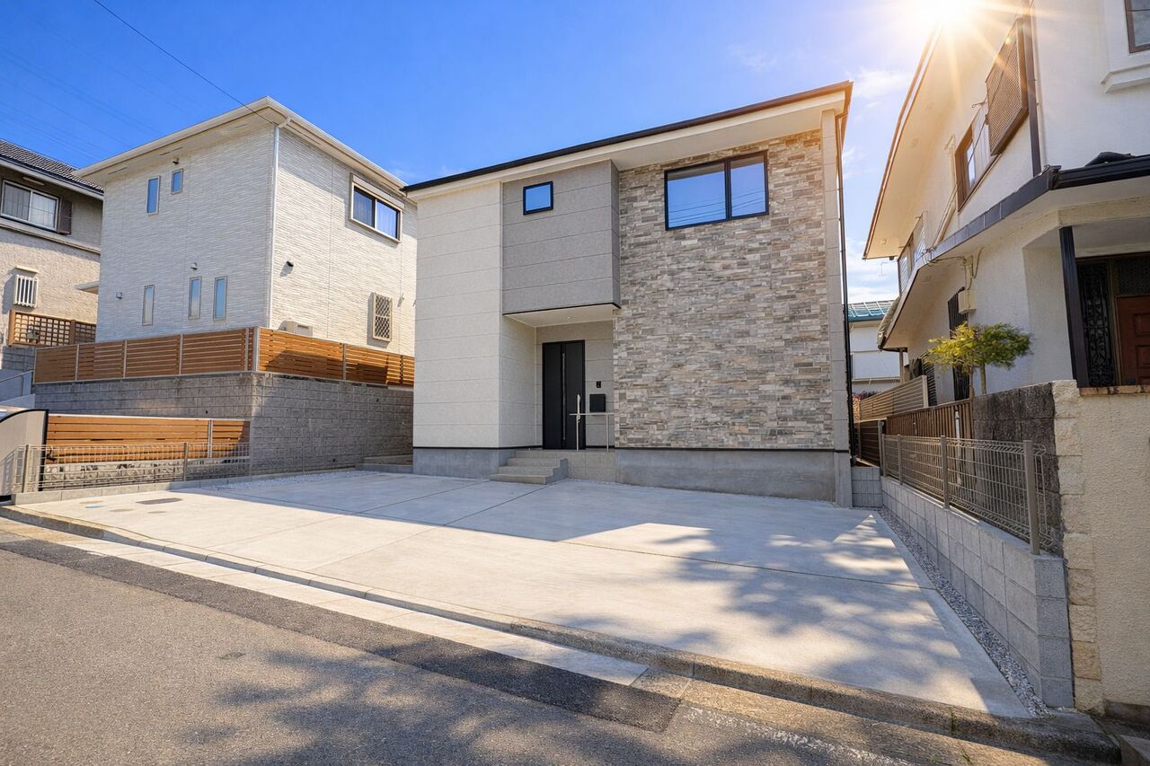 カースペース3台可(車種による) 前面道路約6.5メートル 南側バルコニー 床下収納 キッチンパントリー 浄水器 食器洗浄乾燥機 床下収納 シャワートイレ 手摺付階段 三面鏡付洗面化粧台 エコジョーズ