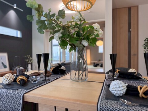 駐車スペース2台可(車種による) 食洗機・浄水器一体型システムキッチン 浴室乾燥機付きバスルーム 電気施錠スマートコントロールキー 宅配ボックス付き機能門柱 都市ガス