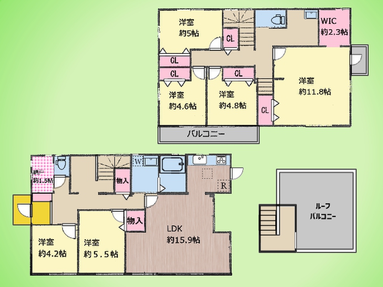 カースペース3台可(車種による) スカイバルコニー付き 眺望良好 LDK約15.9帖 閑静な住宅街 日当り良好 システムキッチン 勝手口 ウォークインクローゼット 納戸1.5帖 スーパー徒歩10分圏内
