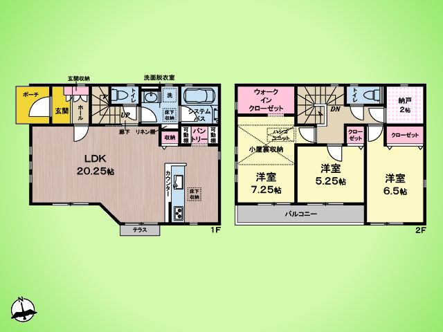 カースペース有(車種による) 緑豊かな住宅地 全室南向き 小屋裏収納 キッチンパントリー リネン棚 納戸約2帖 網戸全窓標準 室内一部アクセントクロス施工 制震ダンパー シャッター 玄関カードキー