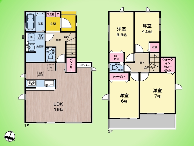 カースペース有(車種による) 都市ガス 24時間換気 LED照明付 カラーTVモニターインターホン 全室ペアガラス 温水洗浄便座 浴室換気乾燥機 三面鏡洗面台 ウォークインクローゼット 全居室収納有