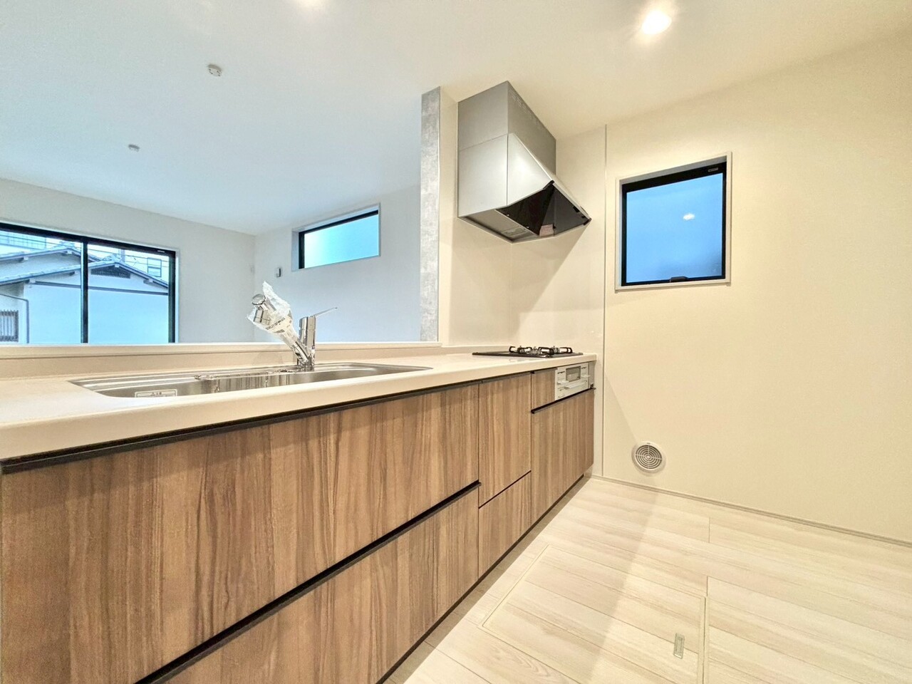 カースペース2台可(車種による) TVモニター付インターフォン 浴室乾燥機 洗浄便座 床下収納 24時間換気 人感センサー シャンプードレッサー 基礎パッキン工法 浄水器 対面キッチン 全居室収納有