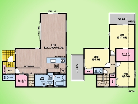 駐車スペース2台可(車種による) 完成済みにつき内覧・即時引渡し可能 設計住宅性能評価書取得 浴室乾燥機付きバスルーム シャンプードレッサー 複層ガラスサッシ 都市ガス