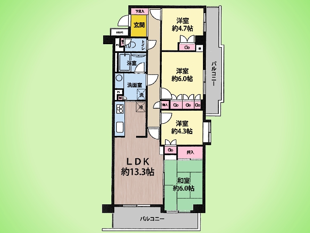 空室につき内覧可能 日当たりの良い角部屋 2面バルコニーで通風良好 2017年水回り設備リフォーム履歴あり
