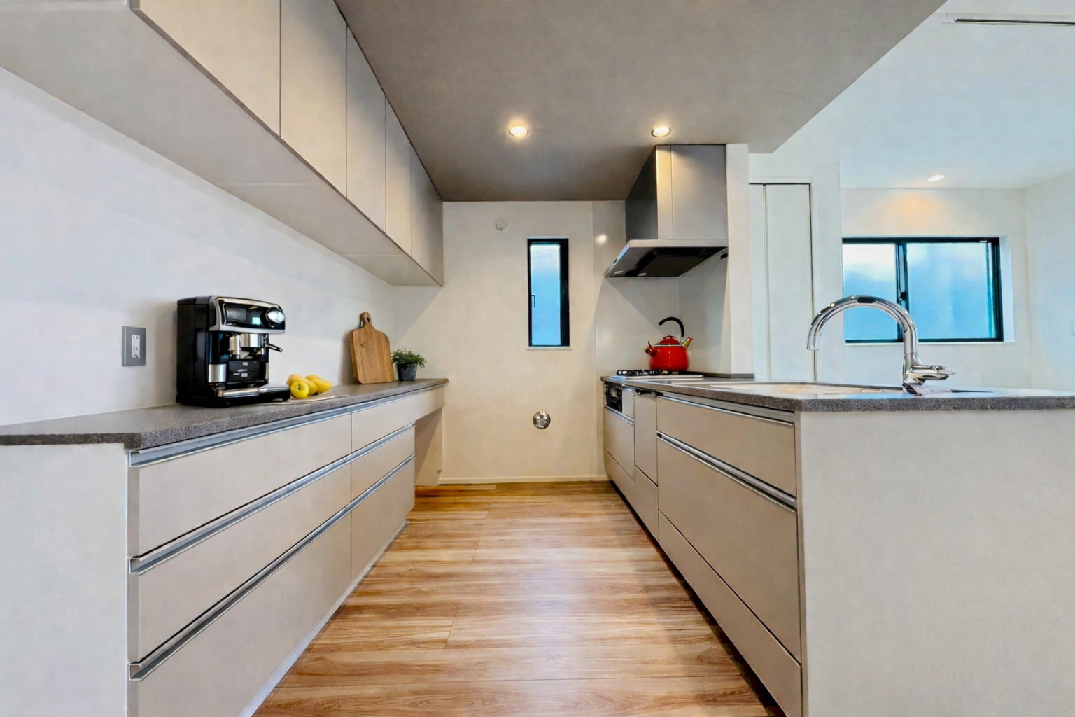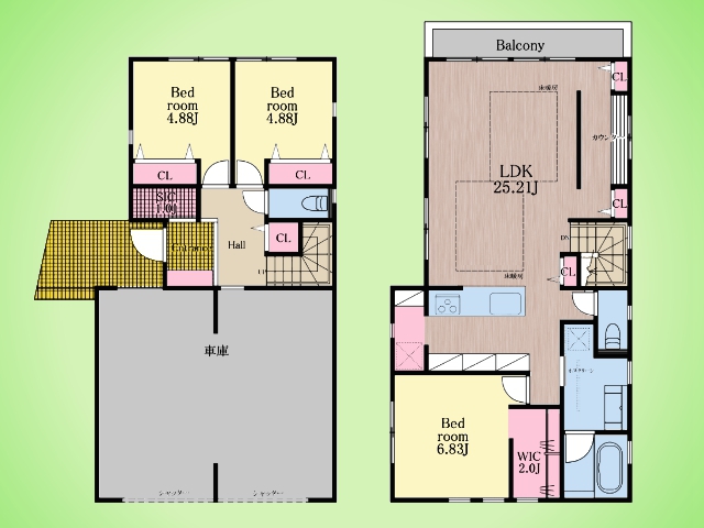 駐車スペース2台可(車種による) LDに床暖房完備 キッチンパントリー 主寝室にはウォークインクローゼット付き 玄関にはシューズクローク付き 都市ガス